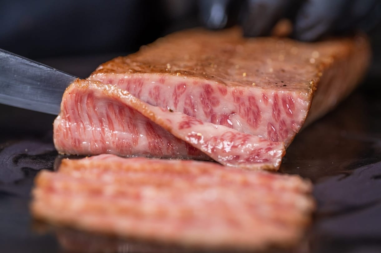 焼肉いの上では、日本全国の生産者のもとへ自ら足を運び、血統・育て方・黒脂質まで見てたA5ランク毛和牛のみを厳選